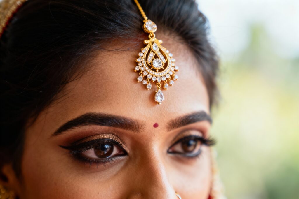 No bridal look is complete without a stunning maang tika that gracefully sits on her forehead. Mang tika is not only an ornament but a symbol of marital bliss and prosperity. Maang tikas are available in different sizes, shapes, and metals. It’s important to choose a maang tika a right maang tika according to the shape of your face. If you have a broader face, a heavy gold & diamond maang tika will enhance the grace of your look. For people with a narrow forehead, it is often best to choose a lightweight and smaller maang tika. It is one such jewellery that is designed to complement the rest of your jewellery. While a smaller maang tika imparts you a trendy yet minimalist look, a traditional, heavy maang tika, when combined with gold & beaded mathapatti imparts a royal grandeur to your look.